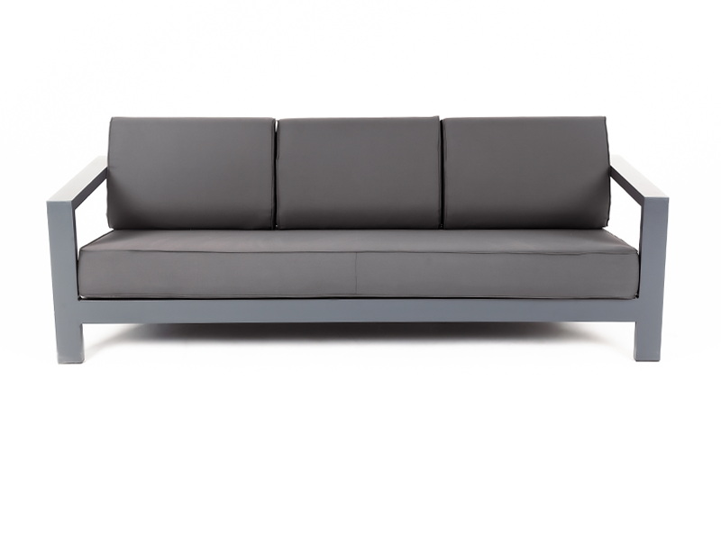 Стильный трехместный диван «Гранада» для обустройства зоны отдыха на балконе, в кафе или летней веранде. Каркас изготовлен из высокопрочного алюминия темно-серого цвета.
