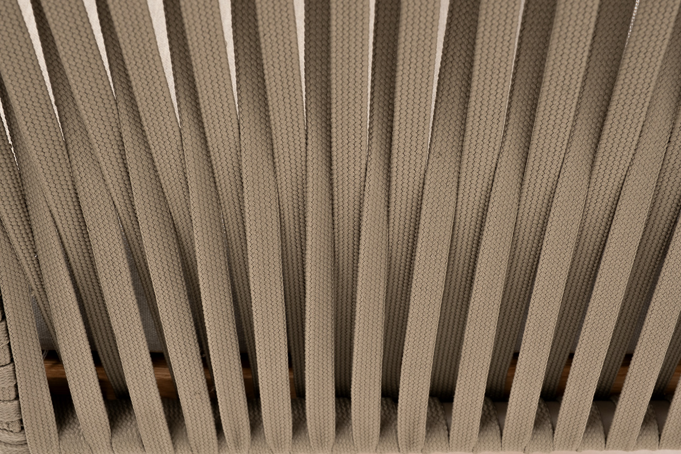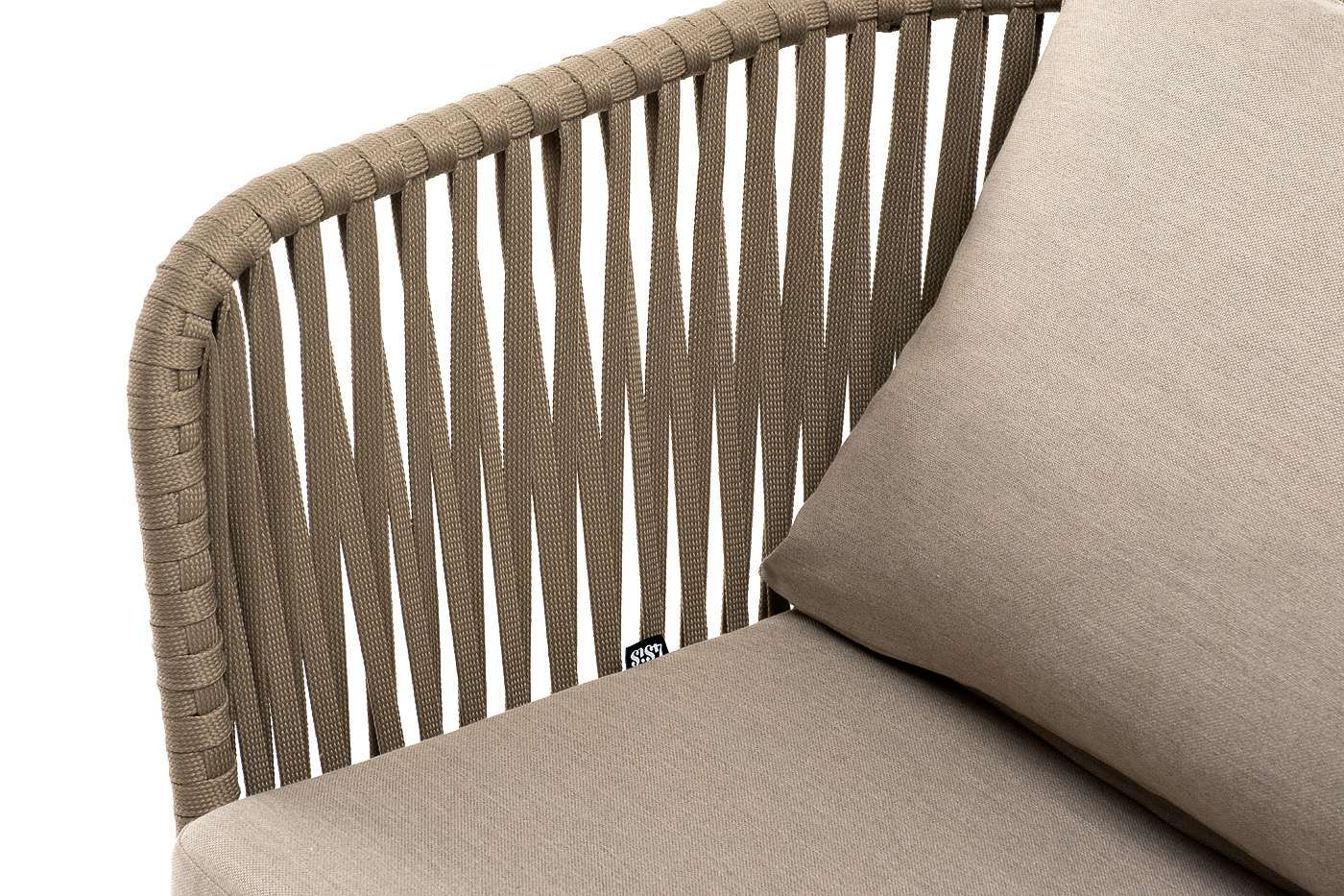 На боковинах - оплетка из синтетических лент, выполненных из полиэфирных волокон высокой прочности. Цвет плетения - серо-коричневый. Тип ткани - рогожка. Основание - дуб.
