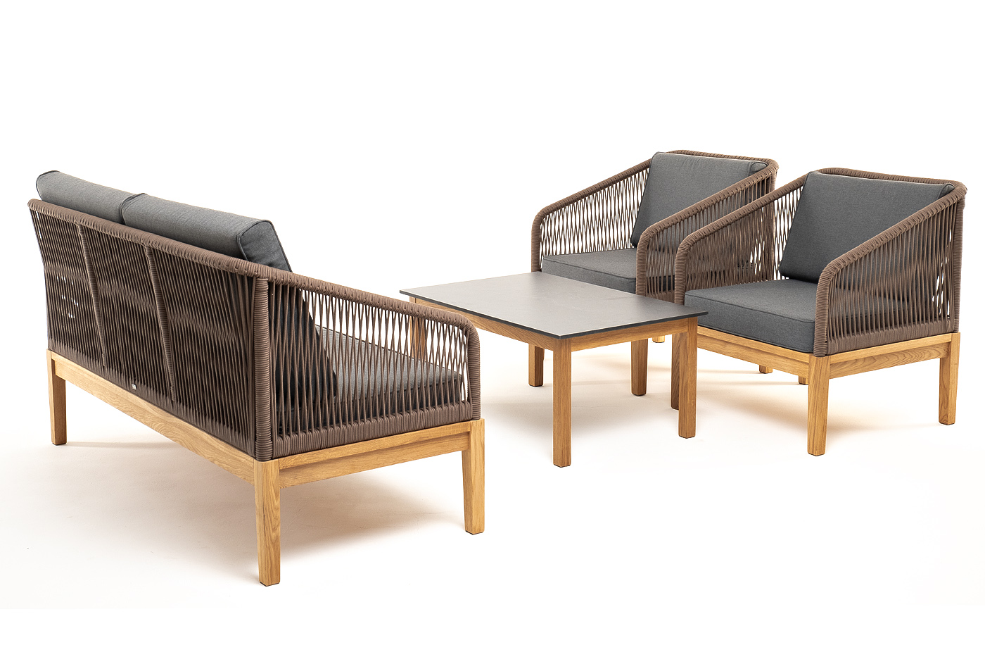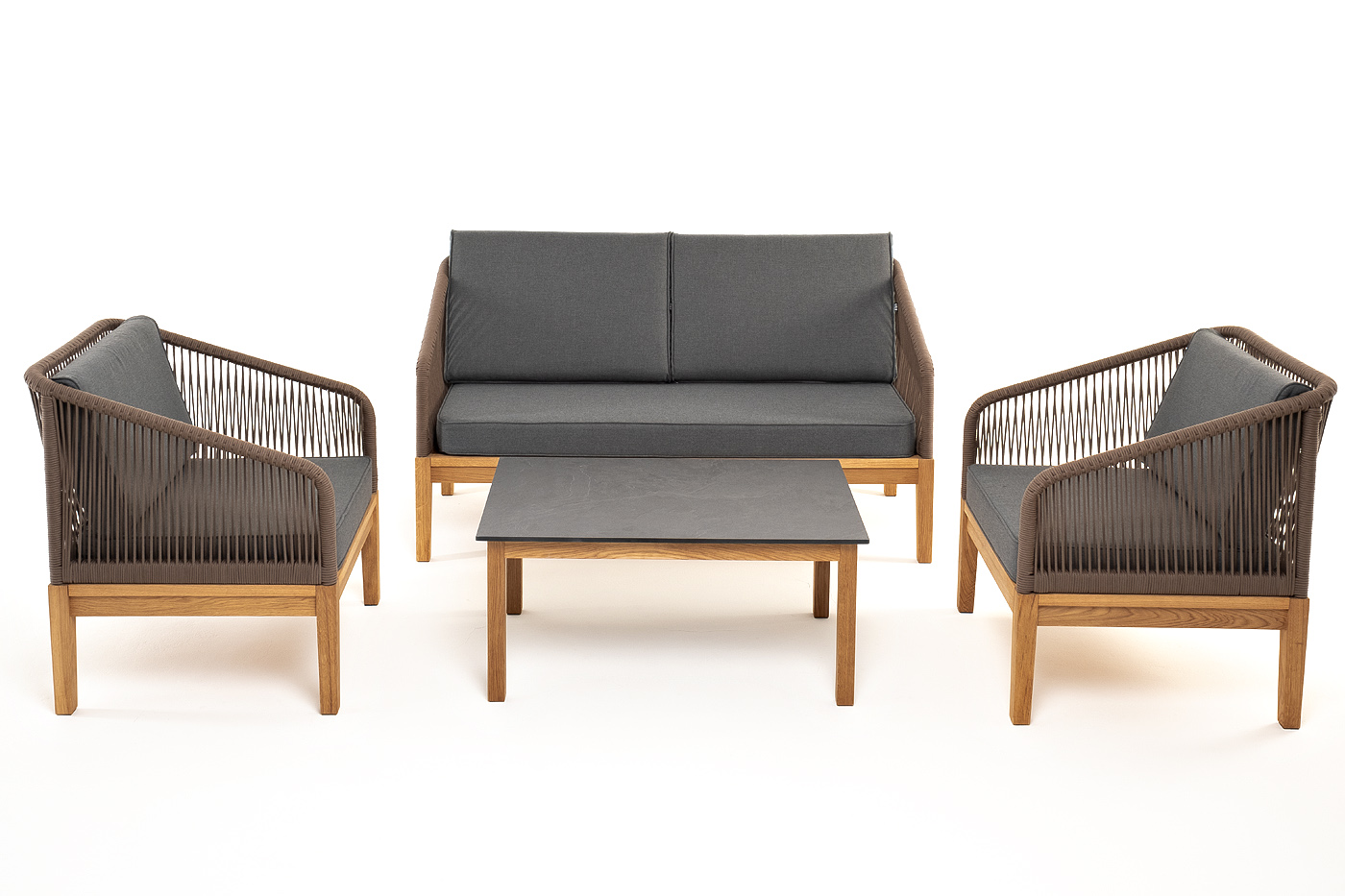"Канны" лаунж-зона 4-местная из роупа со столиком "Канны" (серый гранит), основание дуб, роуп коричневый