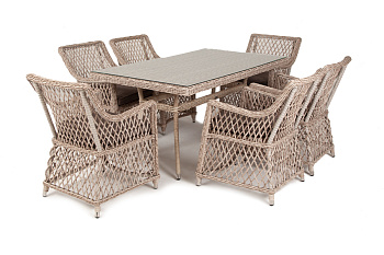 "Венето" обеденная группа на 6 персон со стульями "Милан", каркас белый, роуп бежевый